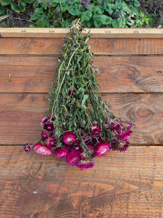 Toutes les fleurs proviennent de notre ferme florale. Récoltées à la main, séchées avec patience, ce sont des fleurs françaises, naturelles et durables.