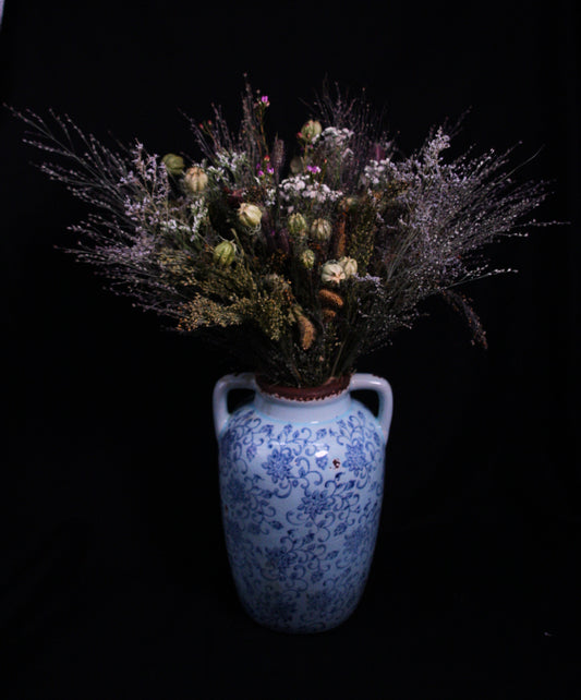 Toutes les fleurs proviennent de notre ferme florale. Récoltées à la main, séchées avec patience, ce sont des fleurs françaises, naturelles et durables.