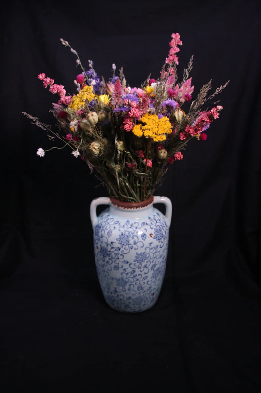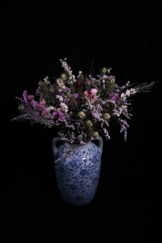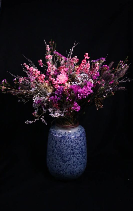 Contrairement aux fleurs séchées industrielles souvent blanchies ou teintes chimiquement, nous prônons le séchage naturel.