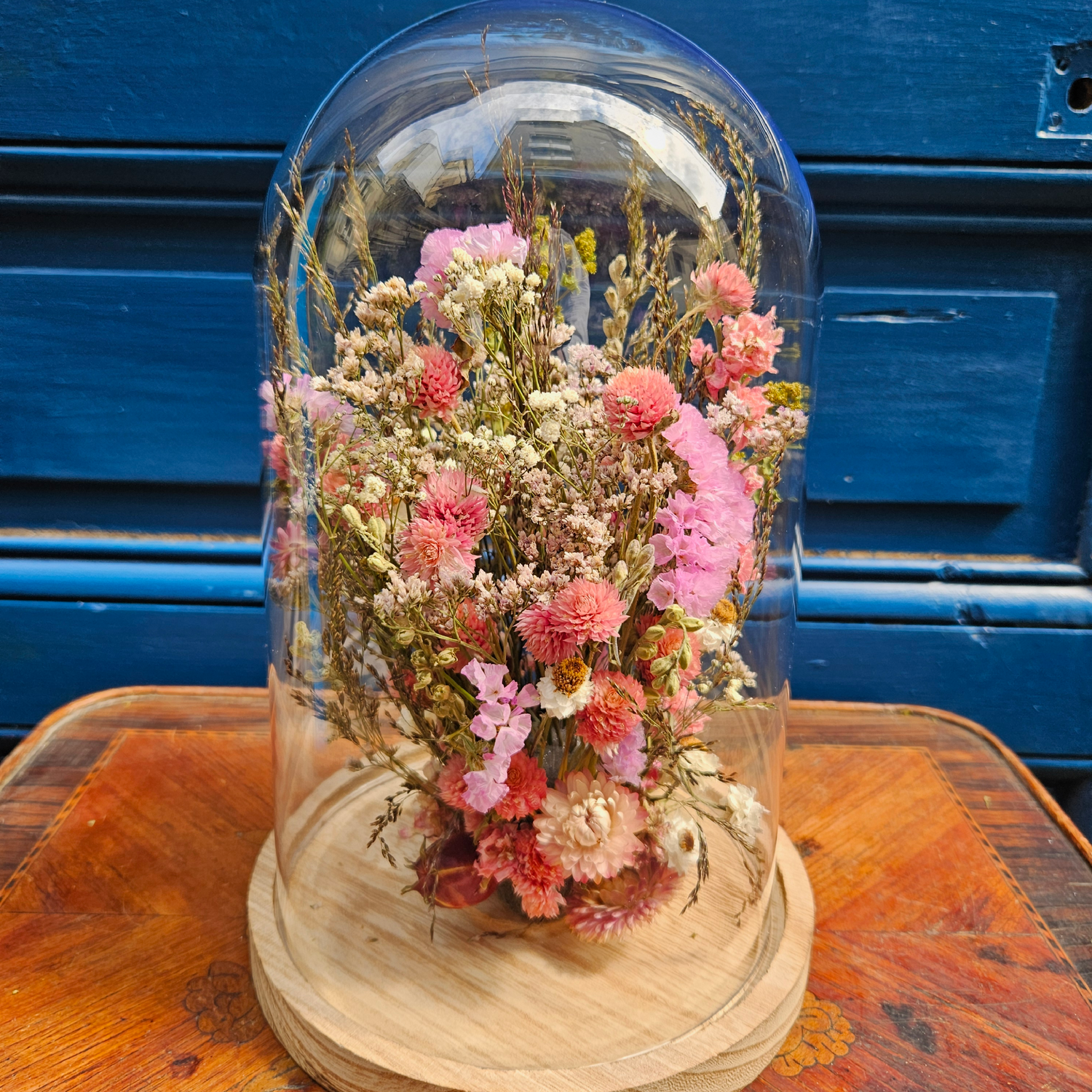 Nous composons votre cloche de fleurs séchées originale pour décorer votre intérieur à votre image.